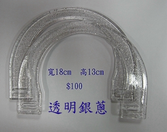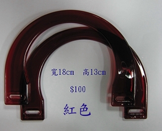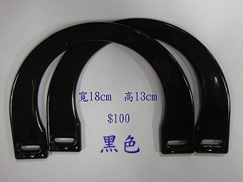 大U型壓克力手把 寬約18cm 高約13cm 一組NT$100元 No.2771A(黑色) No.2771B(透明銀蔥) No.2771C(透明金蔥) No.2771D(紅色) |